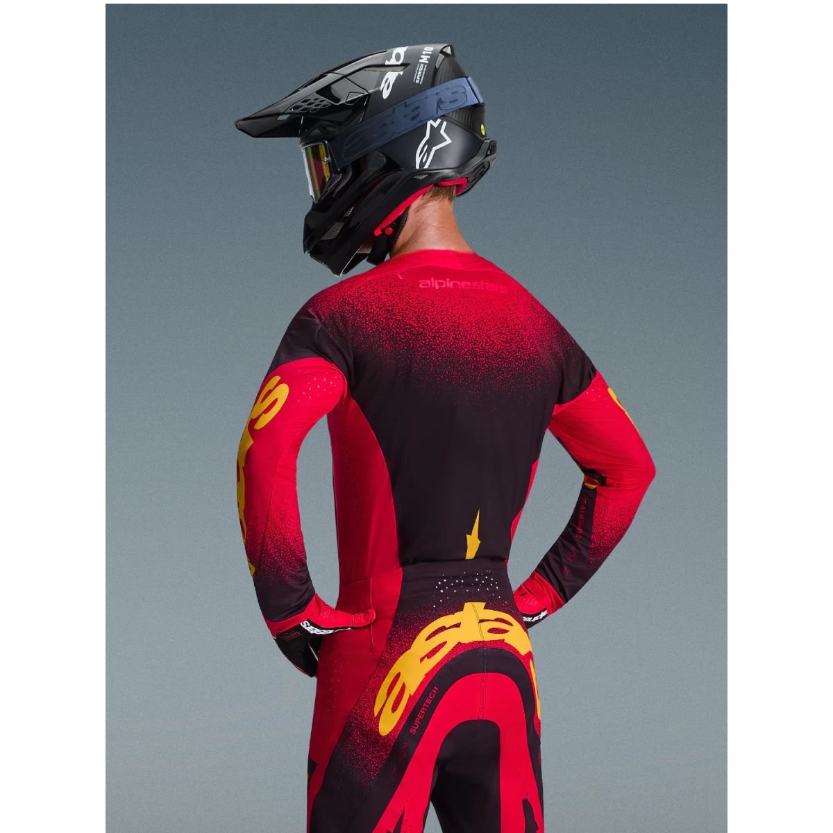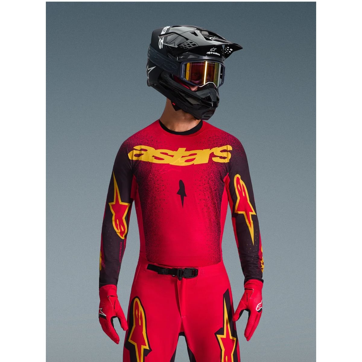 Supertech is Alpinestars innovative Pro Level Motocross apparel line, designed for superior dirt riding performance. Supertech gear offers a full Factory Rider design, featuring a variety of SX and MXGP race-proven technologies that deliver premium levels of flexibility, freedom of movement, ventilation, durability, and rider comfort.